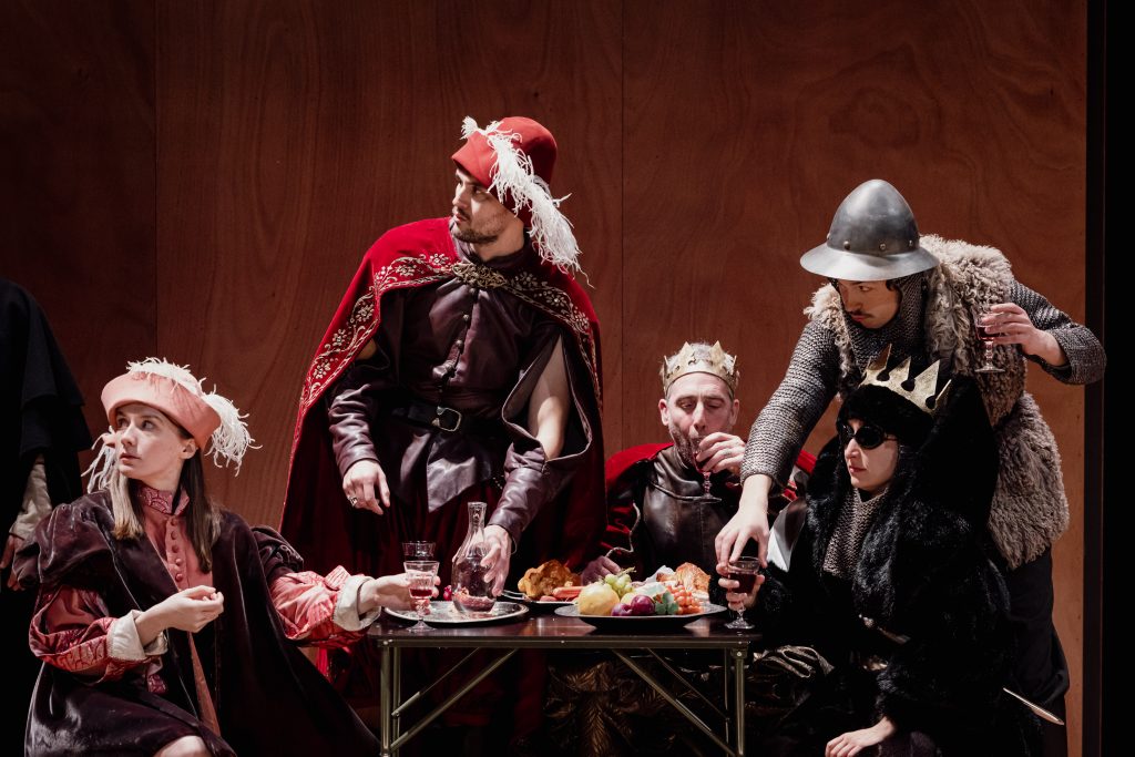 La mise en scène de Cédric Gourmelon est au service de cette pluralité et de cette diversité des registres. Au sein d’une scénographie épurée, les silences assumés prolongent la poésie et l’intensité des cœurs enflammés. Les épisodes de batailles se dessinent dans un brouillard cinématographique qui suspend le temps. L’enchaînement des scènes créait une fresque dynamique dans laquelle chacun des personnages dispose de la place nécessaires pour éclore. Cédric Gourmelon offre un vaste terrain de jeu à ses comédiens qui s’en emparent avec plaisir, sincérité et authenticité, dessinant les contours de personnages attachants et cruels. Mention particulière à Vincent Guédon qui offre au roi Edouard un visage complexe entre figure ridicule, drôle parfois puérile et tête couronnée conquérante sans pitié.