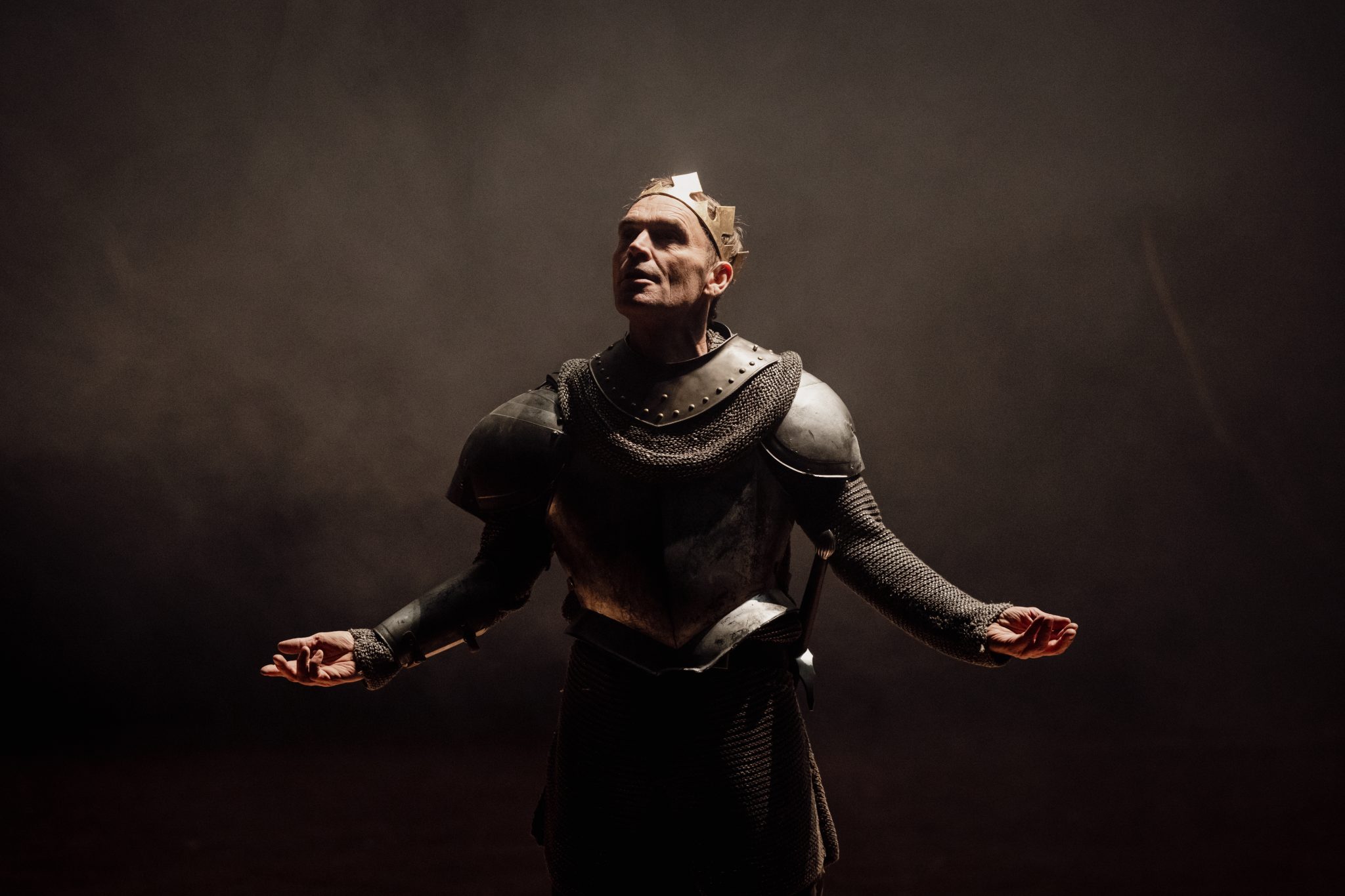 La mise en scène de Cédric Gourmelon est au service de cette pluralité et de cette diversité des registres. Au sein d’une scénographie épurée, les silences assumés prolongent la poésie et l’intensité des cœurs enflammés. Les épisodes de batailles se dessinent dans un brouillard cinématographique qui suspend le temps. L’enchaînement des scènes créait une fresque dynamique dans laquelle chacun des personnages dispose de la place nécessaires pour éclore. Cédric Gourmelon offre un vaste terrain de jeu à ses comédiens qui s’en emparent avec plaisir, sincérité et authenticité, dessinant les contours de personnages attachants et cruels. Mention particulière à Vincent Guédon qui offre au roi Edouard un visage complexe entre figure ridicule, drôle parfois puérile et tête couronnée conquérante sans pitié.